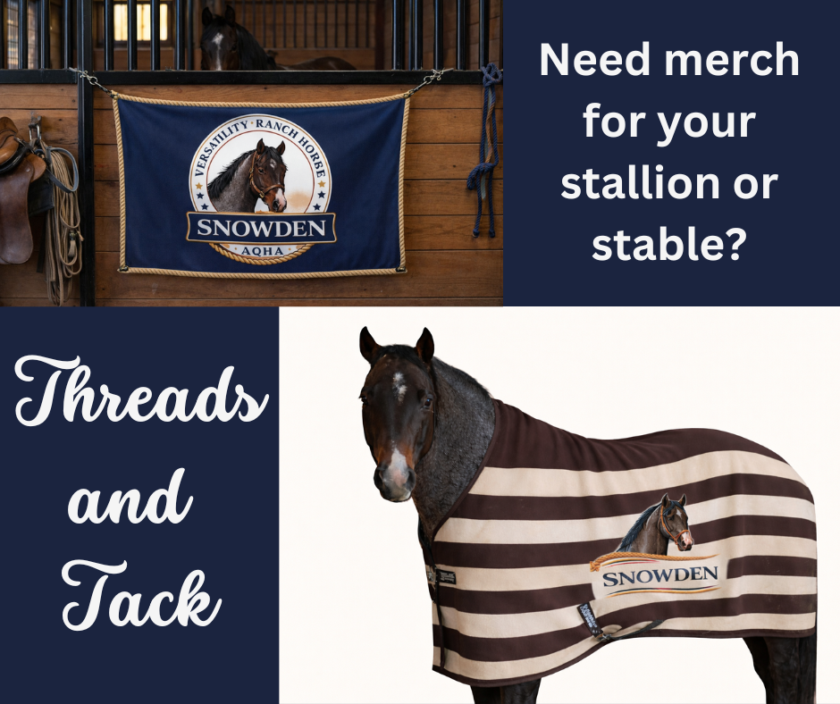 Threads and Tack is the creative baby of Cork N Mane Stable. Owner Susan Dickinson started riding as a child and founded CorkNMane in 1997. She specializes in Western Performance Horses, Breeding, and Stud Service.
